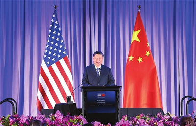 旧金山见证了中美两国人民百年交往的历史。158年前,大批中国工人来到美国,修建连接东西海岸的太平洋铁路,筚路蓝缕,在旧金山建起了西半球历史最悠久的唐人街。从这里出发,中美两国之间发展起7600亿美元双边贸易和累计2600多亿美元双向投资,建立起284对友好省州和友好城市关系,最多每周300多个航班和每年500多万人次的相互往来。这是全世界近四分之一人口共同绘就的宏伟画卷。