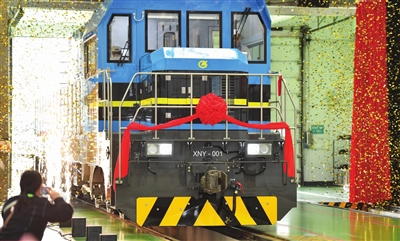11月16日,我国首台新造大功率纯电新能源调车机车在湖南株洲中车株机公司下线。这台机车最大牵引功率1500kW,具有绿色低碳、经济适用等特点。新华社发