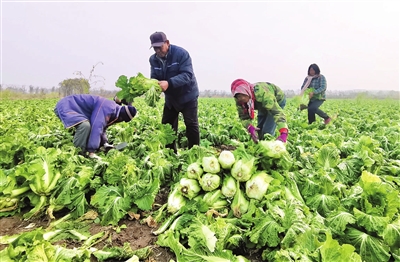北辰区双街村种植户抓紧时间采收成熟的大白菜,田间地头一派繁忙景象。