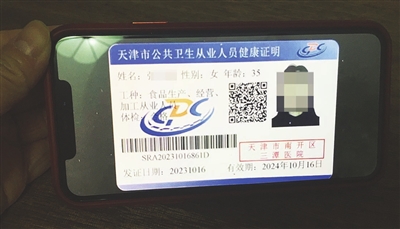 这张“天津市公共卫生从业人员健康证明”上有张女士的姓名、年龄和照片,工种是食品生产、经营、加工从业人员,体检结果是合格。上面有条形码和二维码,发证日期是10月16日,有效期一年,而且还盖有“天津市南开区三潭医院”的公章。“我从来没去过这家医院,也没做过体检,这个健康证是怎么办理下来的?”张女士将此事反映至南开区卫生健康委员会,工作人员调查后回复:经过与三潭医院核实,这张健康证并不是该院出具的。