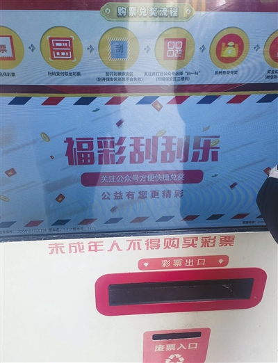 市民王女士近日向本报热线23602777反映,她10岁的女儿在民园广场一台福利彩票自助售卖机(以下简称彩票机)上独自购买了两张彩票。这事让王女士颇为不理解:“不是不能向未成年人销售彩票吗?这些彩票机如何监管呢?”