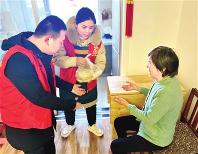 昨日,东丽区华明街唐雅苑社区工作人员为独居和行动不便的老人送上热乎的饭菜,将冬日里的温暖送到他们身边。