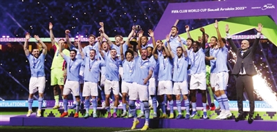 本报讯(记者 顾颖)北京时间昨天凌晨,2023年世俱杯,即现有赛制下世俱杯的最后一届,进行了巅峰决战。欧冠冠军曼城对阵南美解放者杯冠军弗鲁米嫩塞。开场仅40秒,阿尔瓦雷斯破门,打进世俱杯决赛历史上的最快进球,最终曼城4:0完胜弗鲁米嫩塞,队史首次夺得世俱杯冠军,这也是他们一年中参加各项赛事第5次收获冠军。