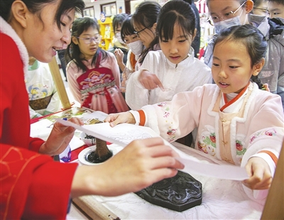 12月23日是天津设卫筑城619周年纪念日。近日,西康路小学开展了“弘扬华夏文明,传承津沽文化”第十二届津沽文化日主题文化传承活动暨校园津沽文化节游园活动。同学们身着汉服,在学校体验杨柳青年画、剪纸等传统手工艺制作,还品尝天津美食煎饼果子、熟梨糕。在轻松快乐的氛围中探寻家乡历史、传承津沽文化。