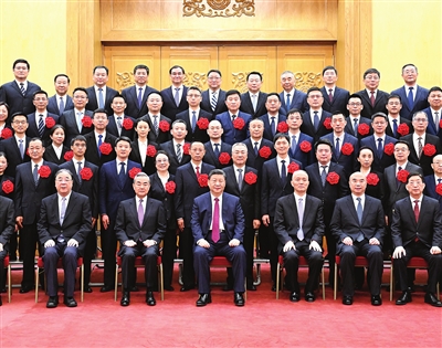 上午11时30分许,习近平等来到人民大会堂东大厅,全场响起热烈掌声。习近平等向代表们挥手致意,同大家亲切交流并合影留念。