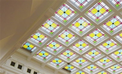 进到大厅以后首先有一种富丽堂皇的感觉,在屋顶上可以看到有一些小的开洞,这些小的开洞是很好的通风孔,这样,高大的空间实现了很好的空气对流,这也就是我们现在所说的热压通风孔。在这个建筑建成的那个年代,还没有空调,即使在夏季非常炎热的时候,在这里也会有非常舒适的感受。(节选,有改动)