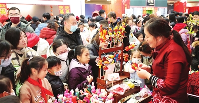 在活动中心一楼大厅,由少年儿童组成的年俗文化表演队用精彩的踩高跷、竹竿舞等民俗表演带动起现场的热烈气氛。在精心打造的“老字号一条街”上,孩子们聆听老品牌的故事,探寻天津的历史文化。糖画、面人儿、熟梨糕、猜灯谜、毛猴、龙嘴大铜壶……再看一场皮影戏,孩子们收获满满的快乐。