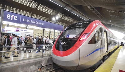 中国企业中车四方股份公司为智利研制的电力内燃双动力动车组1月19日在智利投入载客运营,服务智利国家铁路阿拉梅达至库里科区间。该动车组最高运行时速160公里,是当前南美洲最快的轨道列车。 新华社发