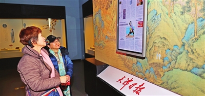 在展厅中,展览特别设置了天津日报“文物与二十四节气”专栏多媒体互动屏。互动屏分辨率高,观众可以手动放大报纸版面,通过阅读专栏报道,了解更多文物与节气的故事。