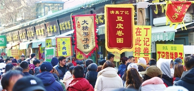 春节期间,来自全国各地的游客,汇集到红桥区西北角特色街区,品尝锅巴菜、卷圈、煎饼馃子等上百种风味小吃,西北角特色街区成为外地游客来津的网红“打卡地”。 本报记者 孙立伟 张磊 孙震 摄