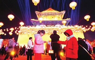 “龙耀津门、爱在南开”2024天津鼓楼新春灯会市集包含各种灯组造型、古装巡游、传统节目、有奖猜灯谜、国潮文创、非遗老字号、国内外美食等,鼓楼商业街重现繁荣景象,截至2月14日,累计接待游客5.78万人次,综合收入253.5万元。