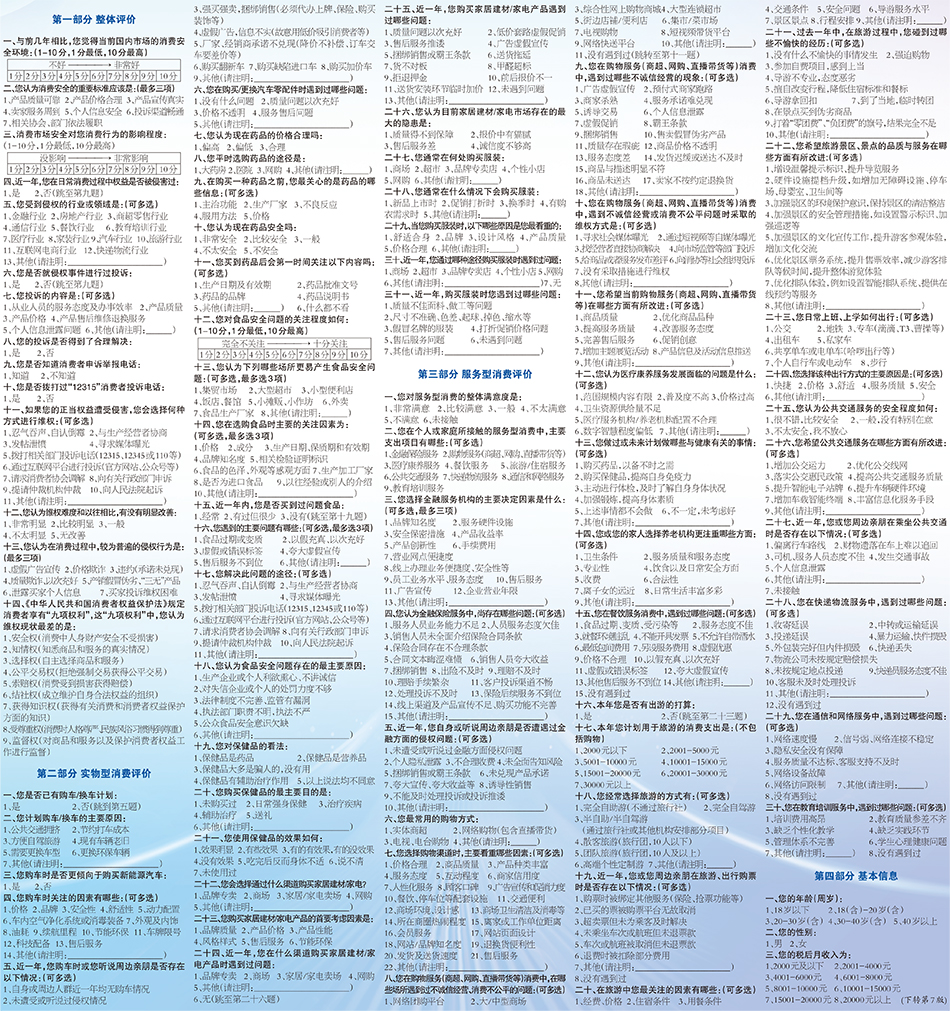 中国消费者协会将今年3·15的主题定为“激发消费活力”,各级消协组织应提升组织维权能力,帮消费者解决后顾之忧;协同共治优化消费环境,助消费者增强获得感;释放消费升级潜能,助力高质量发展。“和谐天津·诚信调查”是《天津日报》践行党报社会责任、走进市民服务群众,联合多家权威部门举办的一项公益活动,至今已连续举办14届,深得天津百姓及社会各界的欢迎。今年的活动由天津海河传媒中心旗下《天津日报》、《今晚报》两大主流媒体联合主办,海河传媒中心大数据调研中心提供专业调查技术支持,将以“激发消费活力”为主题,着力推动天津消费领域信用体系建设,为津城百姓营造更加放心的消费环境。现诚邀您填写“3·15消费者权益调查问卷”,表达您的心声,守卫我们共同的消费权益!