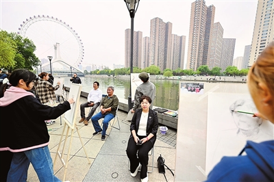 “妈妈,我想让姐姐给我画像。”4岁的小姑娘胡诗淇是跟着母亲郭静娴一起来海河边遛弯儿的。“孩子喜欢画画,能在家门口有美术专业人士给她画像,让她感受艺术氛围,真的特别棒。”郭静娴说,自己从小就住在海河边,亲眼见证了海河两岸的变化,“我前几天发了朋友圈,一张是我小时候在海河边的照片,一张是我女儿在海河边的照片。朋友们看了都感慨,变化太大了,现在海河两岸的景观,既有现代艺术感又不乏历史文化底蕴。”