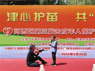 日前,河西区“津心护苗 共‘童’成长”第三届未成年人保护主题宣传月活动启动仪式在人民公园东门举行。启动仪式上,华夏未来艺术团带来小合唱和京剧联唱,西岸女子特警巡逻队现场教授儿童自护知识,11家单位被授予河西区“护苗成长”爱心大使荣誉称号。