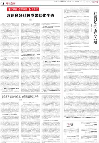 党的二十大报告强调:“健全现代文化产业体系和市场体系,实施重大文化产业项目带动战略。”习近平总书记视察天津时指出,以文化人、以文惠民、以文润城、以文兴业,展现城市文化特色和精神气质,是传承发展城市文化、培育滋养城市文明的目的所在。文化产业和旅游产业密不可分,要坚持以文塑旅、以旅彰文,推动文旅融合发展。健全现代文旅产业体系,加快培育我市文旅产业新质生产力是在推动文化传承发展上善作善成的重要举措,对我市经济高质量发展具有重要意义。