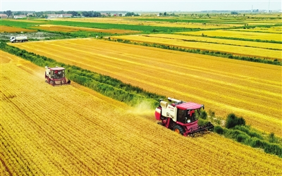 麦浪翻滚、沃野流金。昨天上午,在静海区中旺镇蔡庄子村,伴随着收割机的轰鸣声,小麦大规模机收作业正式启动。