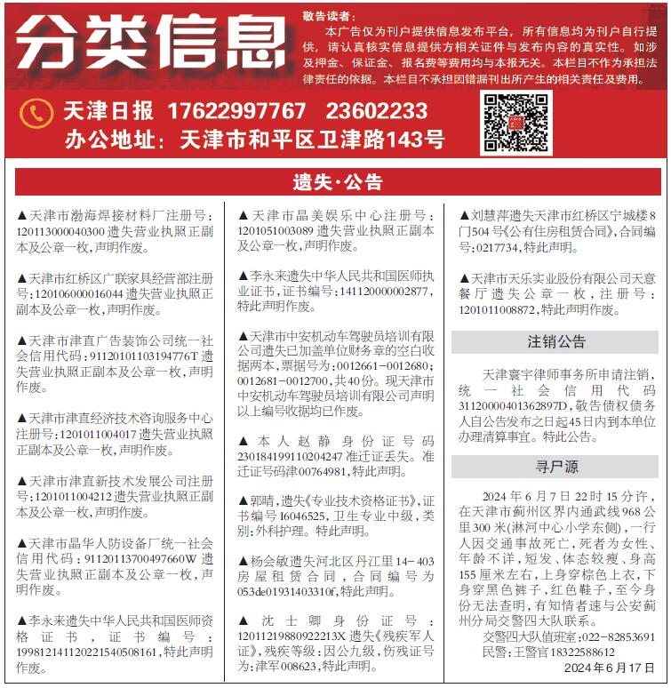 集团总编室:022-23602716 集团办公室:022-23602888 广告处:022-81316697