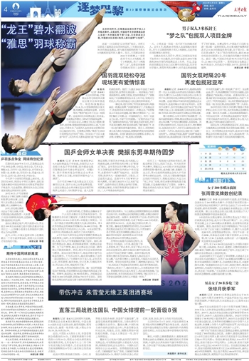 北京时间昨天下午还进行了多项预赛,天津选手王长浩在身体不适的情况下,在男子100米蝶泳的预赛中以52秒37的成绩排在小组第7名,总成绩排在第26名,未能晋级半决赛。“很遗憾我的状态不太好,刚到巴黎时,赛前准备特别好,但前两天发烧加上拉肚子,昨天下午才开始下水,状态受了些影响。”王长浩表示会积极调动自己,把不好的状态摆脱掉,迎接后面的接力比赛。