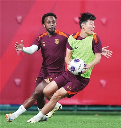 昨天,中国男足继续在大连梭鱼湾球场外场进行训练。左后卫刘洋由于身体问题,缺席了这堂训练课。中卫朱辰杰的身体疲劳反应比较明显,只能在场边单独跑圈。在经历了与日本队的比赛之后,国脚们或多或少都出现了一些身体反应。