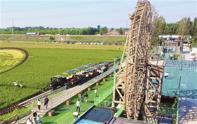 宁河区宁和稻香生态园“小火车”穿行在稻海中。