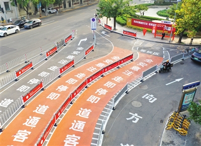 日前,和平区成都道与河北路交口处,新建一个网约车车站,为出租车和网约车落客及等候增设3条车道。本报记者 周伟 摄