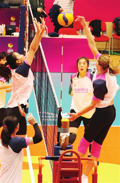 昨天下午,天津队在主教练王宝泉的带领下,在福地——天津市人民体育馆进行了新赛季联赛首轮最后一次场地适应性训练,全队进行了进攻、拦防、发球等单项技术训练以及分组对抗演练。天津队此战预计首发阵容为主攻李盈莹、陈博雅,副攻俄罗斯外援费蒂索娃、王媛媛,二传孟豆,接应多米尼加外援塔皮亚,自由人刘立雯、孟子旋。尤其是两名现役国手李盈莹、王媛媛,相比上赛季在场上站位有所变化。王宝泉坦言,因为一传保障的需要,让一传相对稳定的陈博雅与球队核心李盈莹搭档主攻线,“新赛季,李盈莹将出任‘大主攻’,肩负更重的进攻任务,王媛媛从之前的‘三点副攻手’改为现在的‘两点副攻手’,能让其释放更强的进攻火力。”