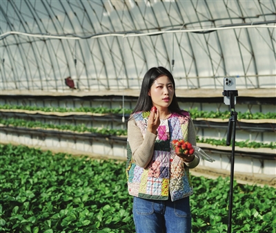 头脑灵活的赵海秋除了将草莓运到市场上卖,还把手机变成“新农具”,通过社交网络、短视频、直播等方式进行线上宣传、销售,与顾客“点对点”对接服务,让草莓鲜果实现“早上在田里,晚上到餐桌”。