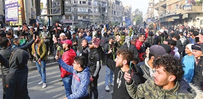 12月8日,当地民众聚集在叙利亚大马士革街头。