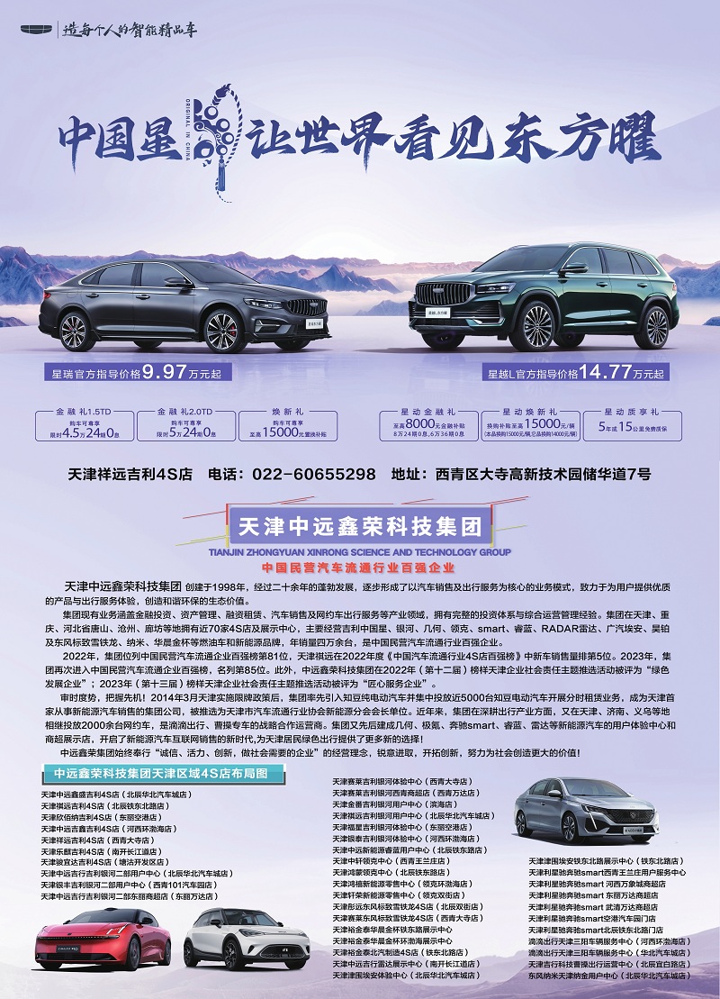 天津日报报业集团所属10报2刊所有作品,版权均属于天津日报报业集团,受《中华人民共和国著作权法》的保护。所有关于天津日报报业集团及其子报子刊内容产品的数字化应用,包括但不限于稿件签约、网络发布、转稿等业务,均需与天津日报报业集团商谈,与天津日报报业集团有互换稿件协议的网站,在转载数字报纸稿件时注明“来源-天津日报报业集团-XX报”和作者姓名,未与天津日报报业集团有协议的网站,谢绝转稿,违者必究。