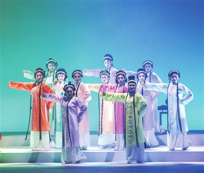 当代戏曲演员用话剧形式表现剧中的戏曲演员,同样是十几岁如花一般的年龄,同样是戏曲科班生活,让她们能够穿越古今彼此共情。结合演员自身掌握的戏曲技巧,剧中梨香院学戏的情节中自然展现了戏曲的毯子功和把子功,包括矮子步和枪花、团扇、云帚、昆曲演唱等戏曲功法,传统艺术的魅力让青年演员身上增添了高光,成功“破圈”,吸引新观众关注戏曲的传承与发展。