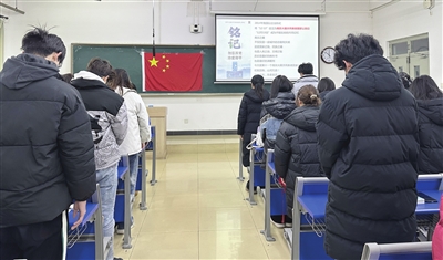 天津农学院各班级组织开展了主题班会活动,作为学校思政教育的一项重要内容,广泛宣传国家公祭日的意义和重要性,引导学生深入了解历史、在抚今追昔中笃定前行。“这不仅是一次纪念,更是一堂生动的教育课,激励我们为实现国家繁荣富强贡献力量。”该校水产学院2023级学生陈安蕊说。