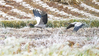 位于云南省曲靖市会泽县境内的会泽黑颈鹤国家级自然保护区是我国黑颈鹤越冬的重要栖息地,目前已有上千只黑颈鹤飞抵保护区越冬。黑颈鹤是国家一级重点保护野生动物,被誉为“鸟类大熊猫”。
