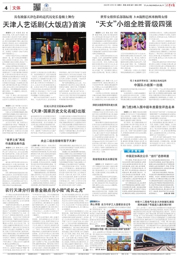 | 版权说明:天津日报报业集团所属10报2刊所有作品,版权均属于天津日报报业集团,受《中华人民共和国著作权法》的保护。所有关于天津日报报业集团及其子报子刊内容产品的数字化应用,包括但不限于稿件签约、网络发布、转稿等业务,均需与天津日报报业集团商谈,与天津日报报业集团有互换稿件协议的网站,在转载数字报纸稿件时注明“来源-天津日报报业集团-XX报”和作者姓名,未与天津日报报业集团有协议的网站,谢绝转稿,违者必究。 天津日报报业集团法律事务部 |