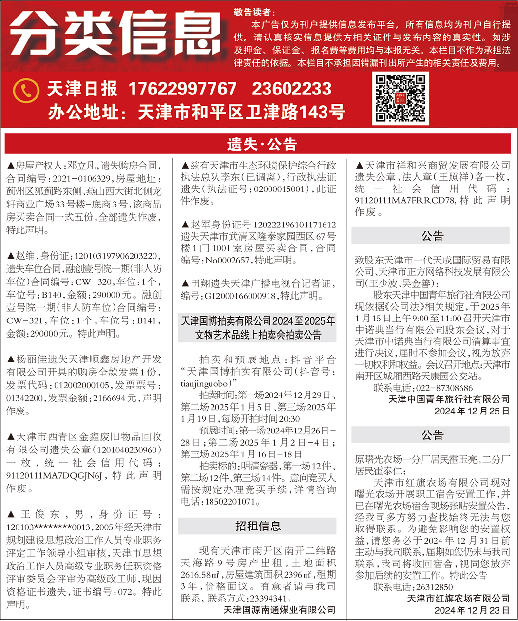 集团总编室:022-23602716 集团办公室:022-23602888 广告处:022-81316697