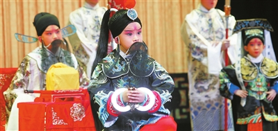 本报讯(记者 张帆 摄影 张立)昨日,由市关工委和华夏未来文化艺术基金会共同主办,华夏未来少儿京剧团排演的少儿版精品京剧《四郎探母》在华夏未来剧场上演。