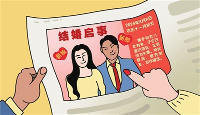 最近,在报纸上刊登结婚启事流行起来。这种多元化的婚俗表达与创新形式,让不少年轻人找到了“复古纸质浪漫”。报纸本身也有着不可替代的文化意义和珍藏价值。