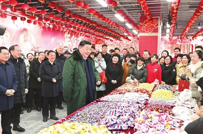 沈阳大东副食品商场历史悠久,富有特色的年节商品琳琅满目。23日上午,习近平来到这里,察看多家店铺,频频同店主和顾客交流,详细了解节日期间市场供应情况。大家见到总书记都十分激动,连声欢呼“总书记好”!习近平对大家说,“菜篮子”、“米袋子”、“果盘子”是民生大事,现在物质丰裕,过年团圆更要让大家吃得好、吃得健康。