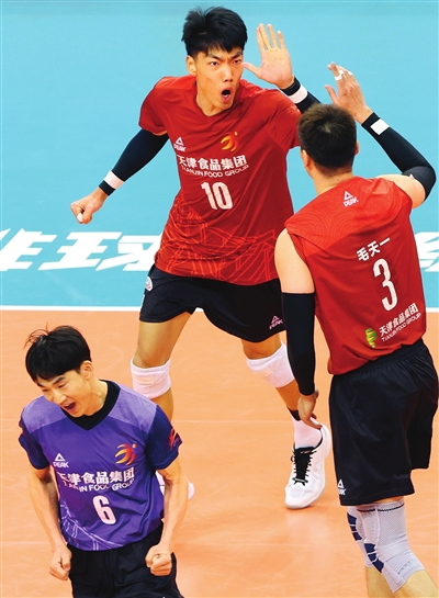 本赛季,天津队除了续约伊朗主攻手埃斯凡迪亚尔和古巴接应二传手罗德里格斯之外,还全新引入了古巴副攻手卡洛斯,更是从上海队招入了副攻老将陈龙海。3名外援与一名内援不仅补强了天津队的阵容实力,更有效提升了全队的比赛经验和关键战的竞争力。常规赛首战虽然在主场负于河北队无缘开门红,但天津队经过及时调整,随后在客场3局横扫福建队、主场3:1击败山东队、主场3:2险胜江苏队,成功拿到3连胜。在常规赛结束后,天津队以7胜7负积21分位居A级联赛战绩榜第3位,创造了球队在全国联赛第一阶段的队史最好成绩。季后赛第一阶段进入D组,天津队又以4胜2负积12分获得小组头名,队史上首次跻身全国联赛4强。