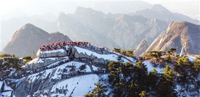 春节假期,位于陕西省渭南市的西岳华山迎来游览高峰,日均接待游客达2万人次。