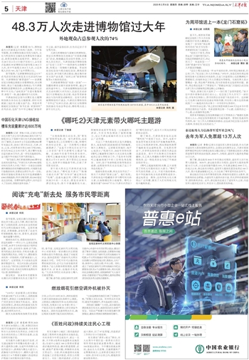“从地铁陈塘庄站出来,到‘事发地’影院看电影;找一家天津菜馆,品尝干煸鱿鱼须;之后到哪吒小镇,和哪吒的身份证合影。这一天的哪吒主题游就圆满了。”这是不少网友在社交平台上分享的“春节天津哪吒主题游”攻略。在2025年的春节档电影市场中,《哪吒之魔童闹海》无疑是最大赢家。截至2月5日20时,影片票房已达54.42亿元,连续多日领跑春节档,打破了多项影史纪录。