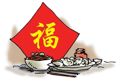 年画里的“连年有余”“麻姑献寿”等,是通过画面含蓄的寓意,表达着人们的心愿,而对联上的“天增岁月人增寿,春满乾坤福满门”,则是直抒胸臆。记得那时我的父兄经常在晚上持笔蘸墨,在裁好的一条条红纸上笔走龙蛇,左邻右舍都是拿着尚未干透、还带有墨香的对联小心翼翼、喜笑颜开。“瑞雪红梅丰年兆 金风绿竹岁华新”,当这些充满吉祥内容的春联于吉时吉刻,在各家各户的门窗上张贴出来,整个村子都被红色渲染得喜气洋洋,年的氛围感立马拉满,除夕就要到了。
