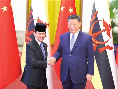 习近平指出,中文传统友谊源远流长。建交30多年来,双方不断深化政治互信,积极对接发展战略,各领域务实合作取得丰硕成果,在国际和地区事务中保持良好配合,树立了大小国家平等相待、互利共赢的典范,也为地区和平稳定和发展繁荣作出了积极贡献。中国和文莱共建命运共同体,顺应时代发展大势,符合两国和两国人民根本利益,开启了两国关系崭新篇章。双方要乘势而上,深化互利合作和战略协同,彼此尊重、坦诚互信,永远做隔海相望的好邻居、相互信赖的好朋友、共同发展的好伙伴。