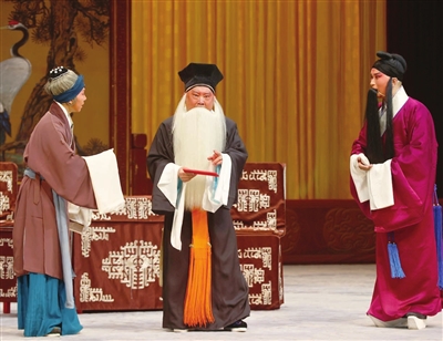 本报讯(记者 王洋 摄影 姚文生)昨晚,天津河北梆子剧院小百花剧团与郭德纲合作演出的河北梆子《红书宝剑》在中华剧院上演。
