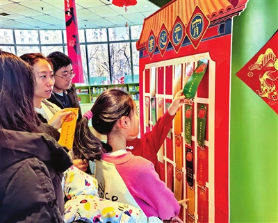 河西区图书馆“巳蛇迎春贺元宵”猜灯谜活动现场热闹非凡,谜面悬挂在灯笼下或粘贴在展示板上,静静等待解答者。读者们或聚在一起讨论,或独自思考,认真品味。随着一道道谜底被逐一揭晓,读者们脸上洋溢着幸福感和满足感。大家纷纷表示,通过活动,不仅感受到节日的喜庆,更加深了对传统文化的热爱。