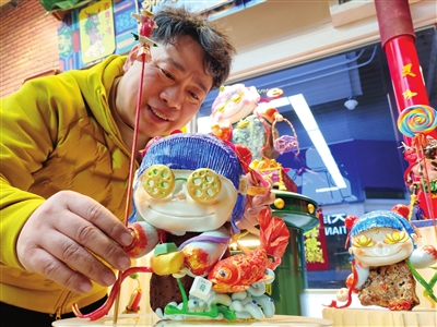 记者在现场看到,石漫文创作品题材丰富,其中有被评为2023“天津礼物”特色旅游商品的“石来运转小神兽”系列作品以及卡通、“哪吒”系列作品等。石漫艺术设计师任冬表示,把赏石艺术和面塑艺术相结合,是石漫系列作品独具魅力之处。
