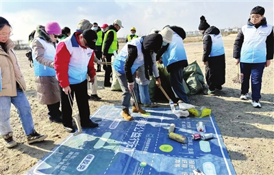 昨日,我市一些志愿者自发组织到位于滨海新区的荒地排河防潮闸开展沿岸垃圾分拣公益活动,净化滩涂,倡导环保理念。 本报记者 齐向颖 摄