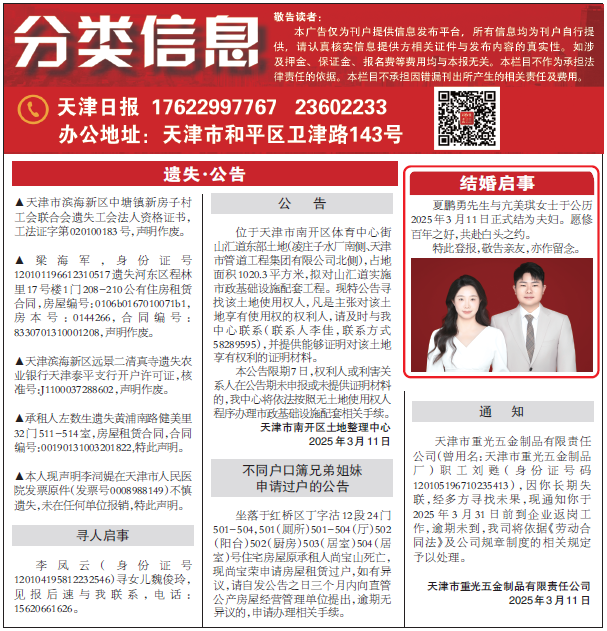 集团总编室:022-23602716 集团办公室:022-23602888 广告处:022-81316697