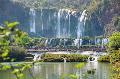 春日里,在云南省曲靖市罗平九龙瀑布群风景区,湖光山色美不胜收,吸引众多游客。 新华社发