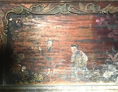 小时候,并没有对这些柜画有过多的思考,只是看到这些画中人都是古人打扮。这些柜画一度还被爷爷奶奶用麻纸糊了,原因是那时大搞“破四旧”运动,不采取必要的保护措施这些柜子会被当作封建迷信清理掉。其实,谁家有啥,村里的激进分子知根知底,用麻纸糊了,只是给对方一个面子而已。真正要清除的是公共场所比如庙里那些泥塑和壁画。