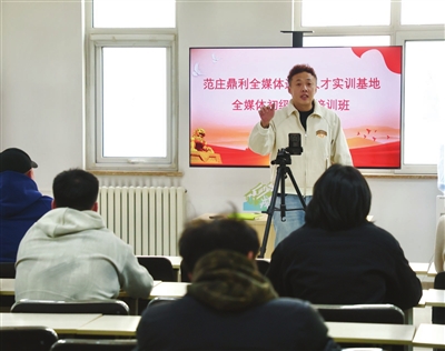 依托“六基地一学院五平台”产业体系,范庄鼎利全媒体运营人才实训基地应运而生。学员们在培训期间,就有机会参与到直播带货中,在实践中不断提升能力。不少经过培训的学员,掌握专业直播技能的同时,对农产品销售也产生了极大兴趣,成功实现上岗就业。